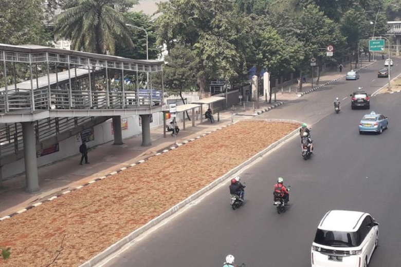 Wacana Gubernur DKI Jakarta, Anes BAswedan tentang pembongkaran area rumput yang memisahkan halte bus Jalan Sudirman menjadi trotoar keras akan digarap usai Asian Games 2018.