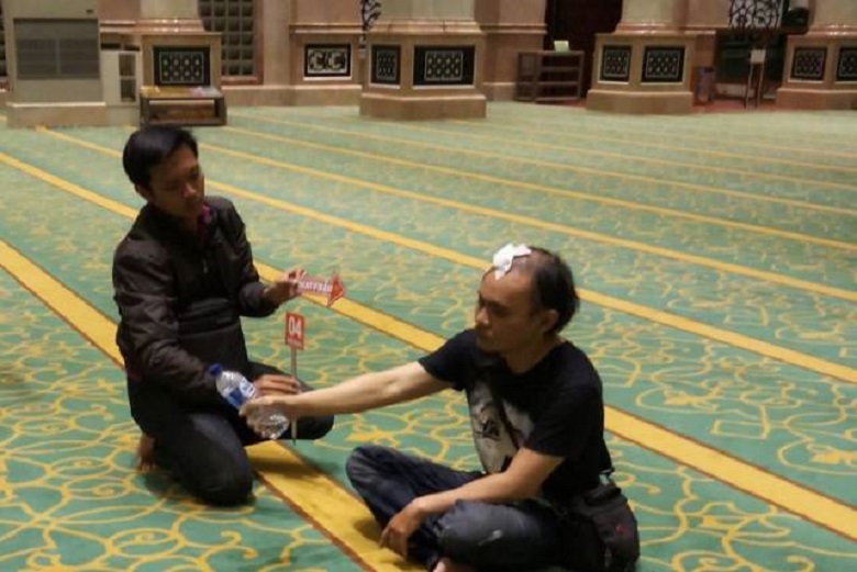 Suharmin Lias (34) menyiramkan air seni di karpet Masjid Kubah Emas, Jl Raya Meruyung, Limo, Depok, Jumat (22/12/2017). Aksinya itu diketahui marbut masjid yang kemudian mengamankannya bersama warga. Suharmin sempat dihakimi warga sebelum akhirnya polisi datang mengamankannya. Rupanya, Suharmin tidak hanya menyiramkan air seni di Masjid Kubah Emas, Depok, tetapi juga di gereja dan vihara.