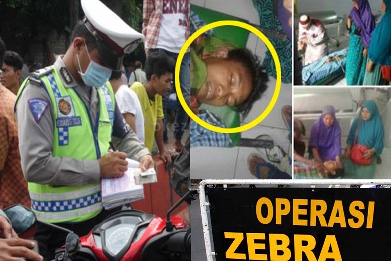 Kejadian bermula saat korban tahu ada oprasi Zebra didepan dan ingin menghindar karena mungkin dirasa dirinya tidak memiliki SIM ( surat Ijin Mengemudi).