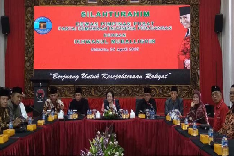 Ketua Umum PDI Perjuangan Megawati Soekarnoputri menerima kunjungan perwakilan Ikhwanul Muballighin dengan menggelar pertemuan tertutup selama kurang lebih satu jam, di Kantor DPP PDIP, Jalan Diponegoro, Menteng, Jakarta, Kamis (26/4/2018).